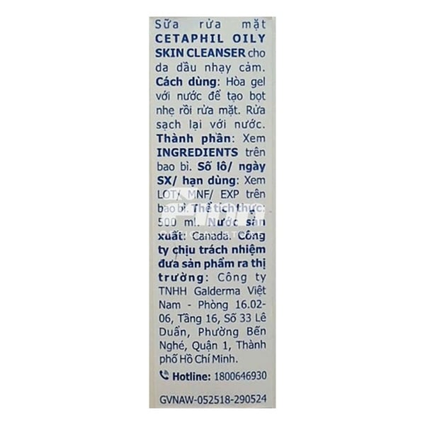 NK - Sữa rửa mặt cho da hỗn hợp đến da dầu Cetaphil Oily Skin Cleanser 500ml