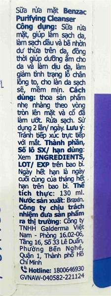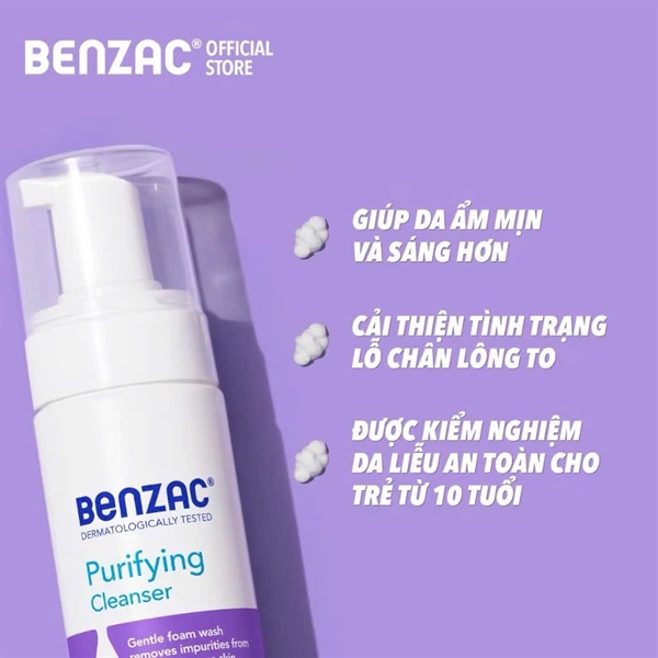 NK - Sữa rửa mặt dạng bọt làm sạch sâu cho da dầu mụn Galderma Benzac Purifying Cleanser 130ml