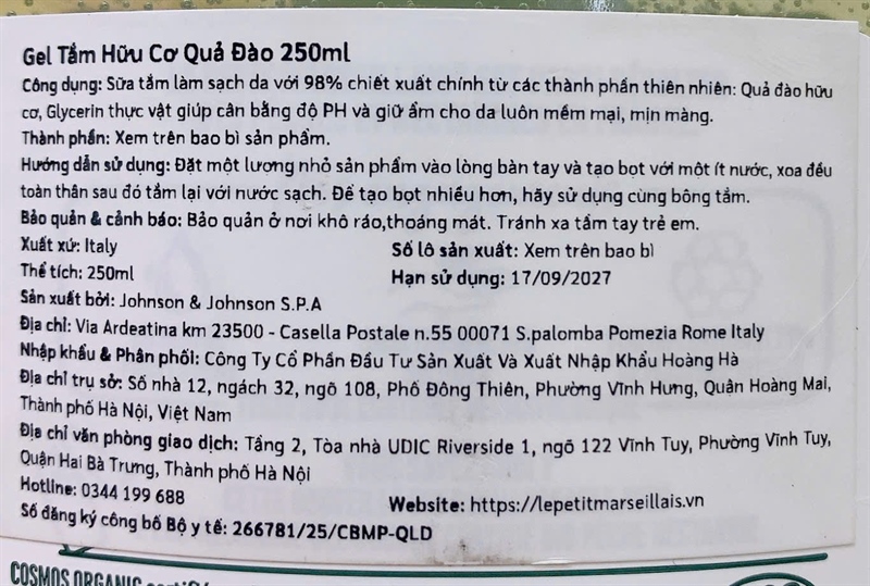 NK-Sữa tắm 92% Hữu Cơ Le Petit Marseillais Hương Quả Đào 250ml