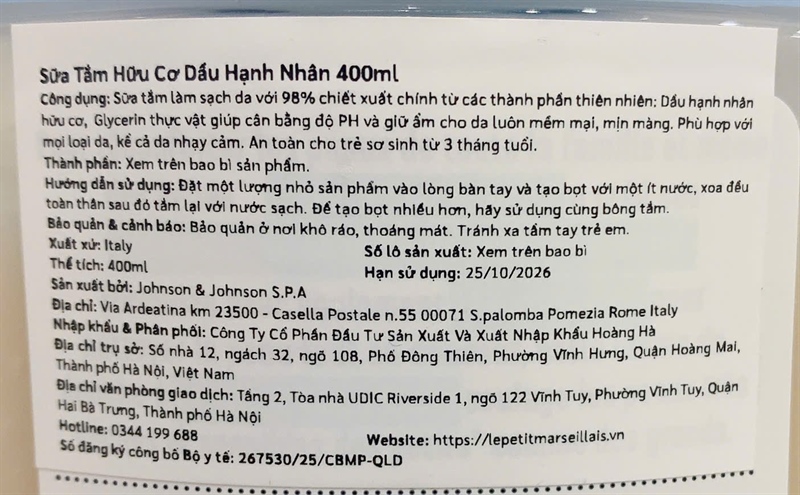NK-Sữa tắm 98% Hữu Cơ Le Petit Marseillais Dầu Hạnh Nhân 400ml