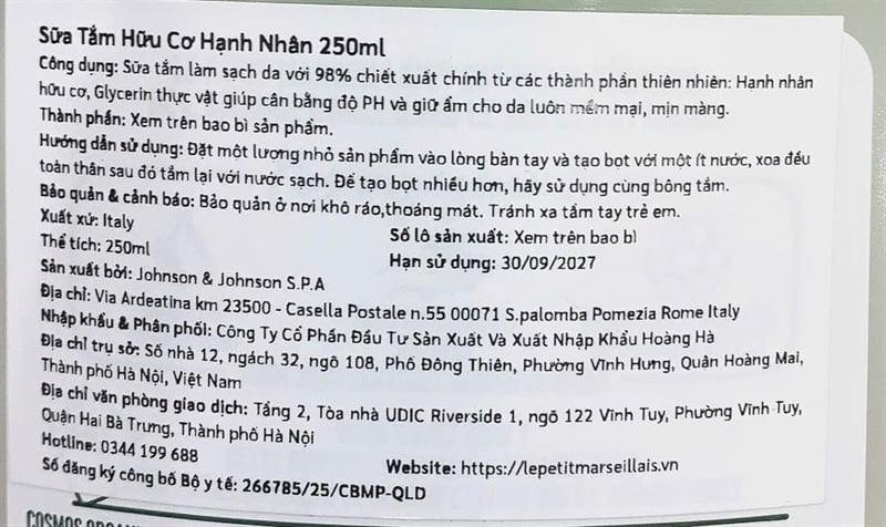 NK- Sữa tắm 98% Hữu Cơ Le Petit Marseillais Hạnh Nhân 250ml