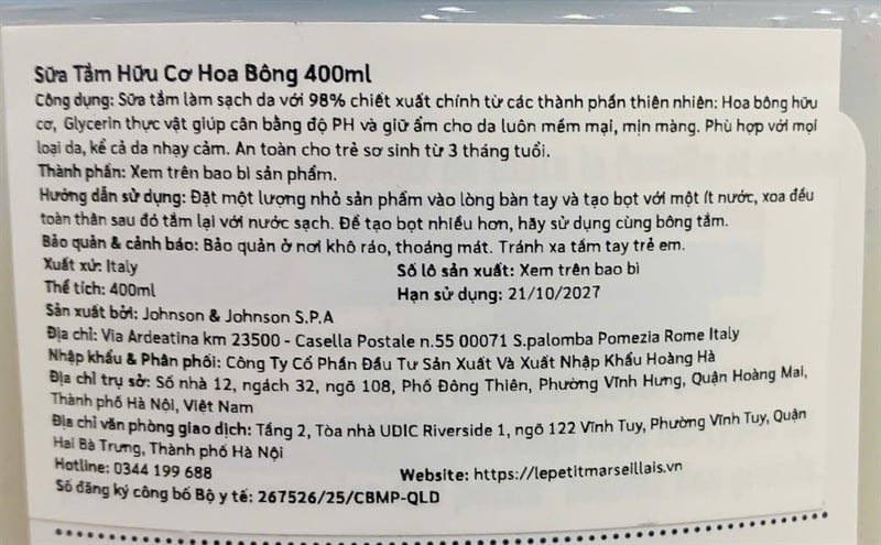 NK-Sữa Tắm 98% Hữu Cơ Le Petit Marseillais Hoa Bông 400ml