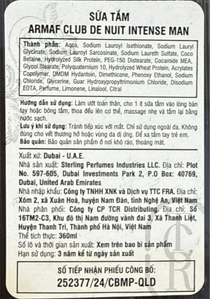 NK - Sữa tắm Armaf Men's Club De Nuit Intense Shower Gel 12Oz 360ml