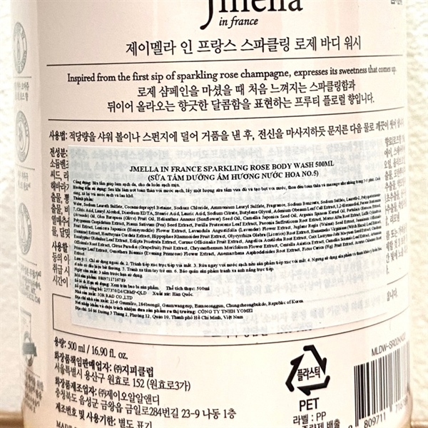 NK - Sữa tắm dưỡng ẩm hương nước hoa No.5 Jmella Sparkling Rose Body Wash 500ml
