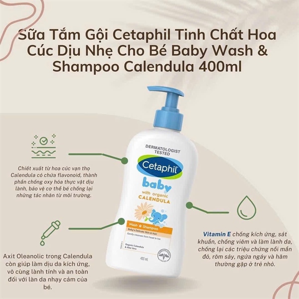 NK-Sữa tắm gội cho bé Cetaphil Baby Wash & Shampoo With Organic Calendula 400ml