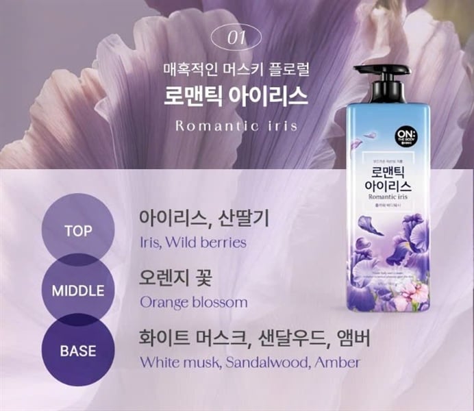 NK - Sữa tắm làm sạch, dưỡng ẩm hương hoa diên vĩ On The Body Romantic Iris 875ml
