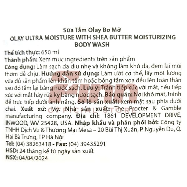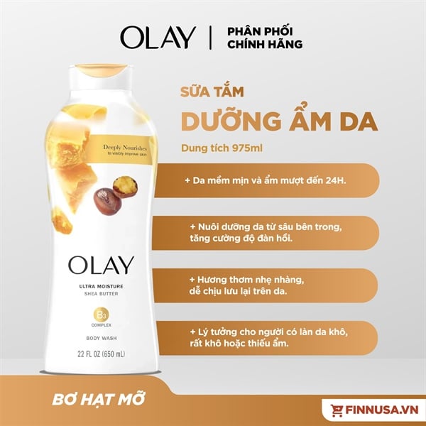 NK - Sữa tắm Olay Ultra Moisture with Shea Butter 24HR Moisturizing Body Wash 650ml 22Oz