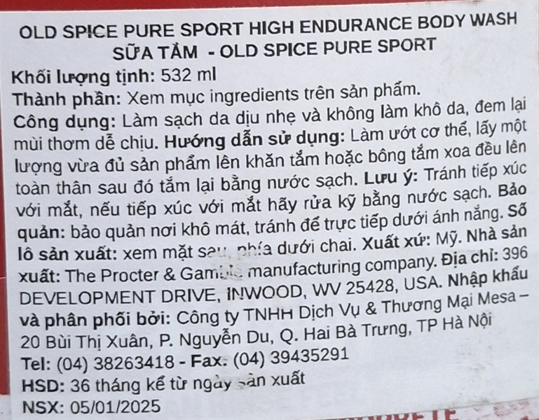 NK - Sữa tắm Old Spice Pure Sport High Endurance Body Wash 532mL (18 FL OZ)