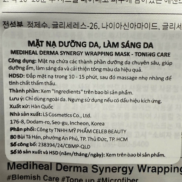 NK - Tách lẻ Hộp 4 miếng mặt nạ dưỡng da, làm sáng da Derma Synergy Wrapping Mask Madecassoside X Vitamin C 25ml