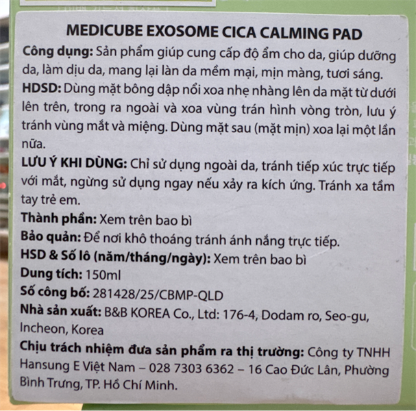NK - Toner pad làm dịu phục hồi da Medicube Exosome Cica Calming 100 miếng 5Oz 150ml