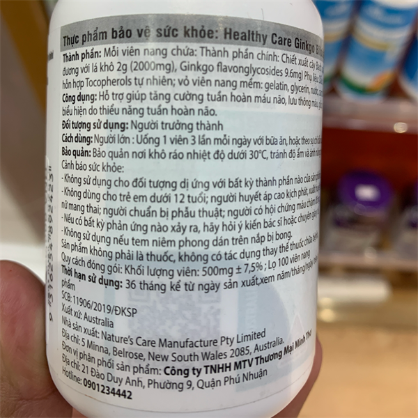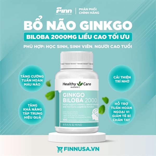 NK - (Úc) Viên uống bổ não Healthy Care Ginkgo Biloba 2000mg 100 viên