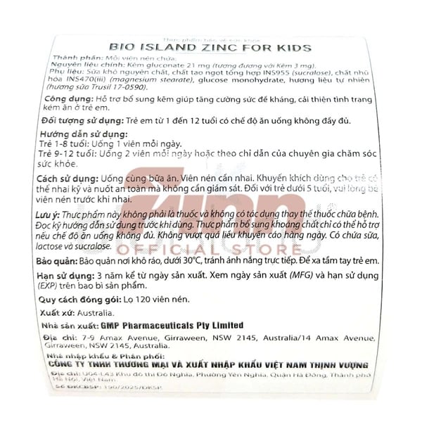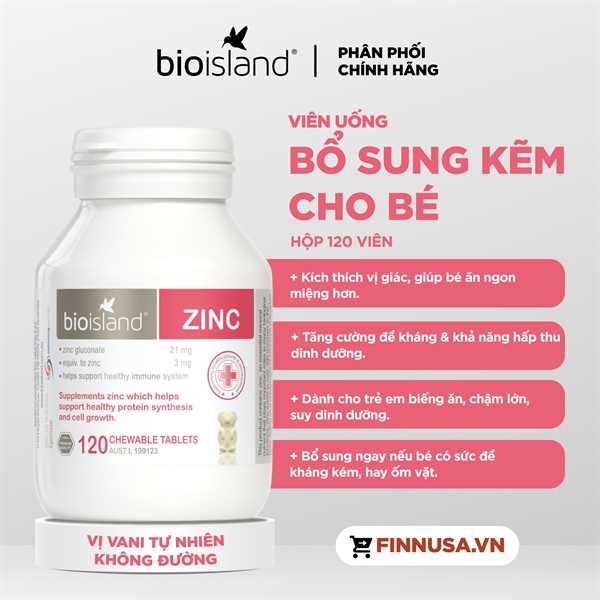 NK- Viên bổ sung Kẽm cho bé Bioisland Zinc 120 viên (Hộp)