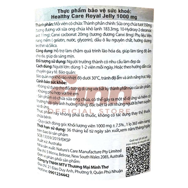 NK - Viên sữa ong chúa Healthy Care Royal Jelly 1000mg 365 viên