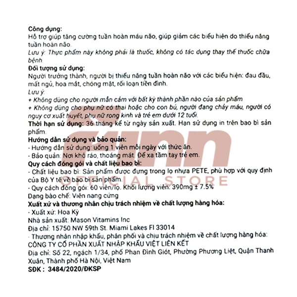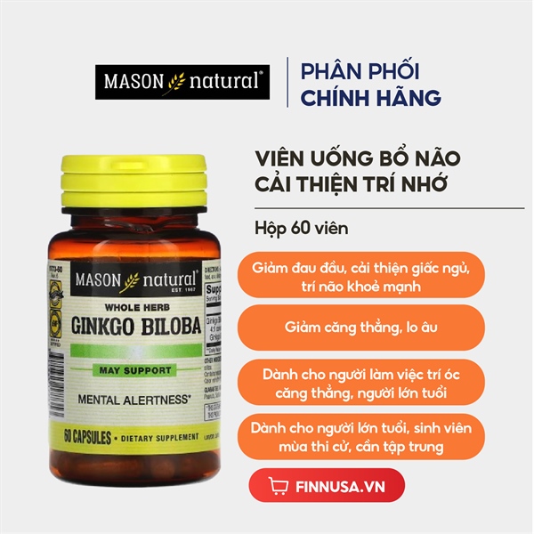 NK - Viên uống bổ não Mason Natural Ginkgo Biloba 60 viên