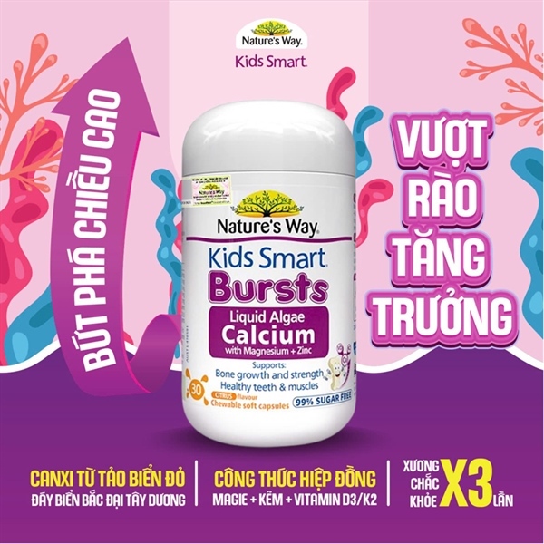 NK - Viên uống bổ sung canxi từ tảo biển đỏ cho bé Kids Smart Bursts Nature's Way Liquid Algae Calcium with Magnesium + ZinC 30 viên