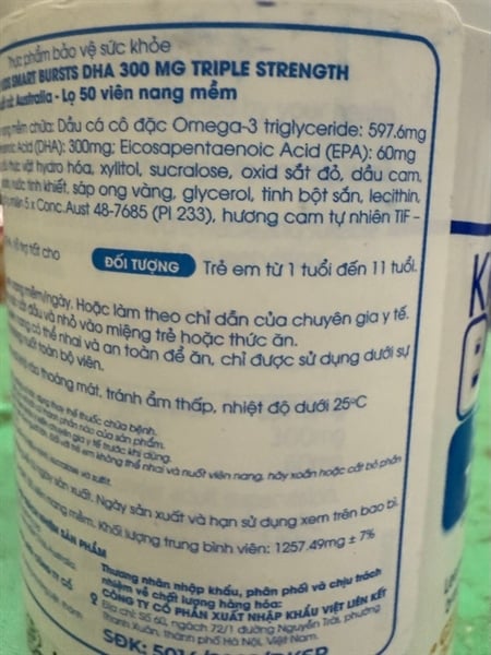 NK - Viên uống bổ sung DHA cho bé Nature's Way Kids Smart Bursts DHA 300mg Triple Strength 50 viên