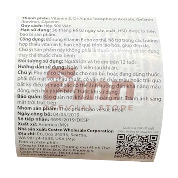 NK - Viên uống bổ sung Kirkland Signature Vitamin E 400IU 500 viên