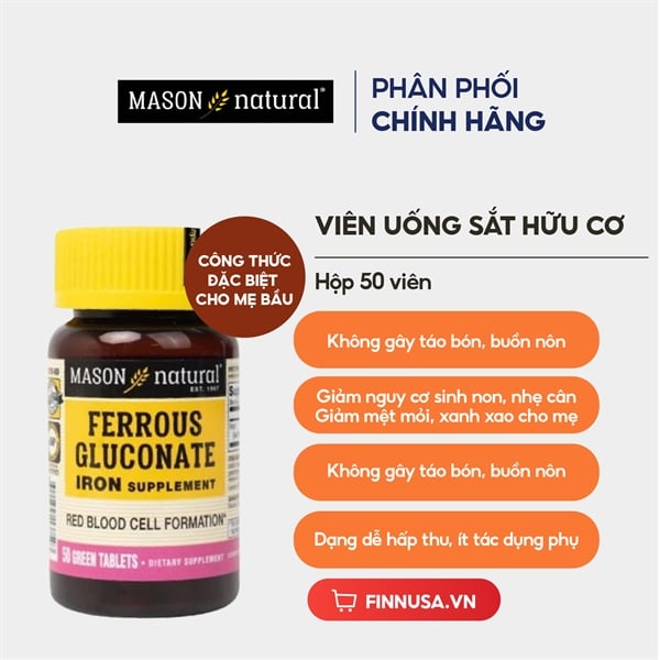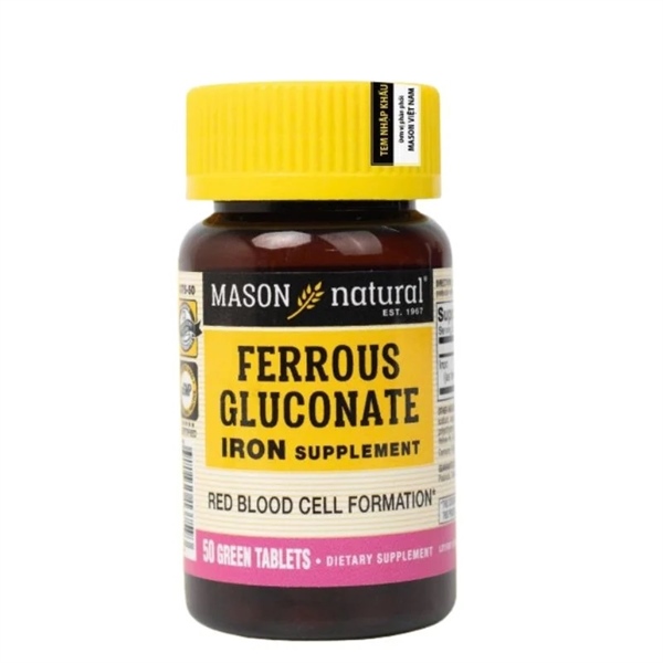 NK - Viên uống bổ sung sắt hữu cơ cho bà bầu Mason Natural Ferrous Gluconate Iron Supplement 50 viên