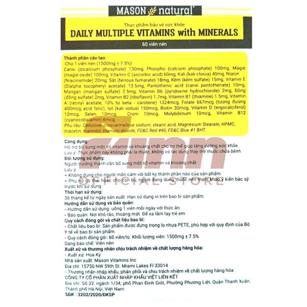 NK - Viên uống bổ sung vitamin và khoáng chất Mason Natural Daily Multiple Vitamins With Minerals 60 viên