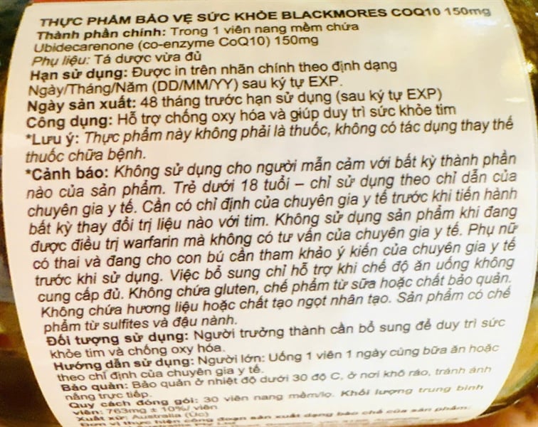 NK - Viên uống bổ tim mạch Blackmores CoQ10 150mg 30 viên
