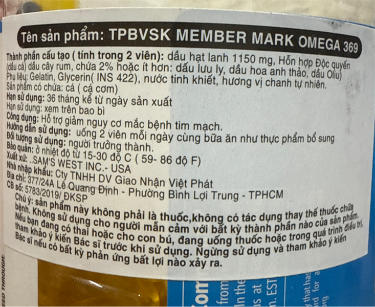 NK - Viên uống dầu cá Member's Mark Omega 3-6-9 Dietary Supplement 300 viên