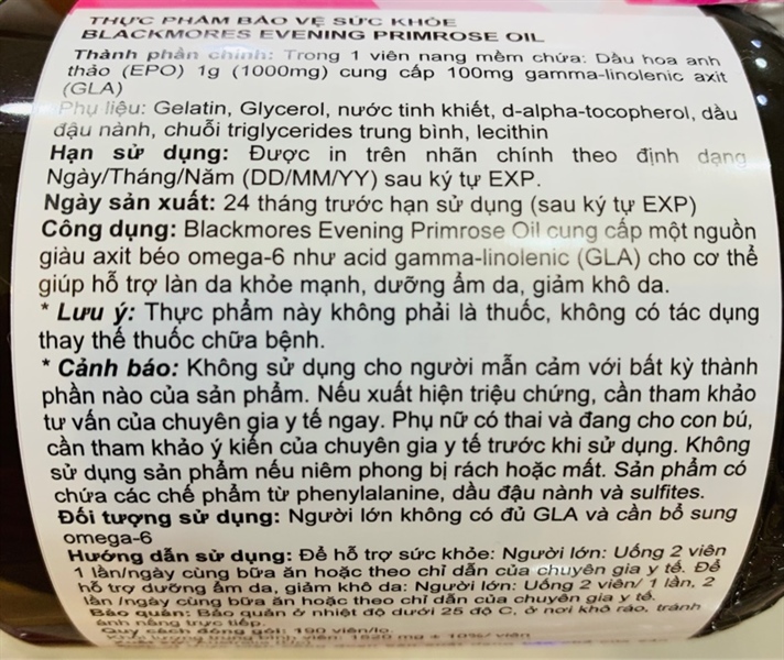 NK - Viên uống tinh dầu hoa anh thảo Blackmores Evening Primrose Oil 190 viên