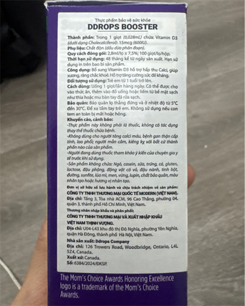 NK- Vitamin D3 Ddrops Booster 600IU cho bé từ 1 tuổi 0.09Oz 2.8ml