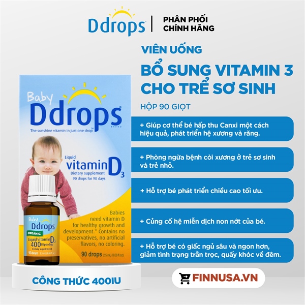 NK- Vitamin D3 nhỏ giọt cho bé Baby Ddrops 400IU 90 giọt (Hộp)