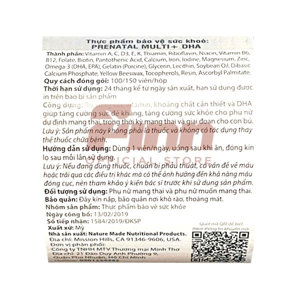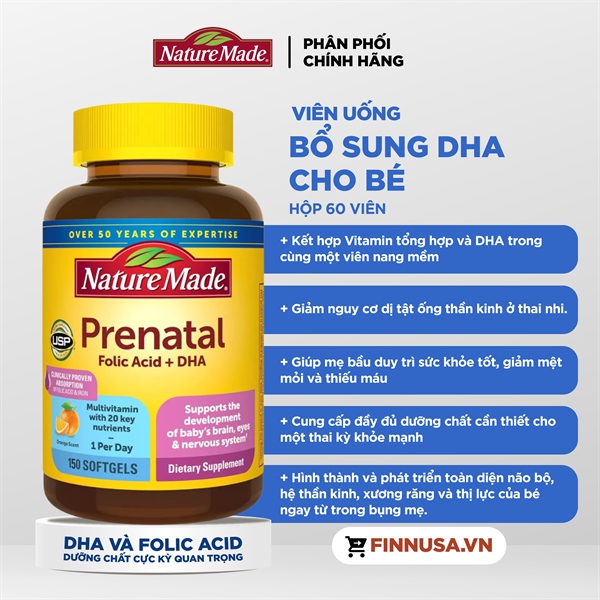NK - Vitamin tổng hợp cho bà bầu Nature Made Prenatal Folic Acid + DHA 150 viên