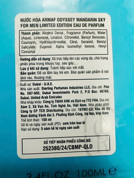 NK - Nước hoa Armaf Men's Odyssey Mandarin Sky EDP 3.4Oz 100ml