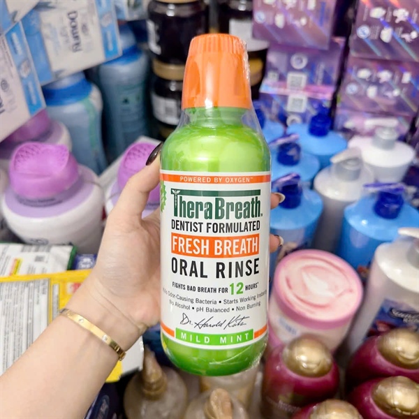 Nước súc miệng TheraBreath Fresh Breath Dentist Formulated Oral Rinse - Mild Mint 16Oz 473ml
