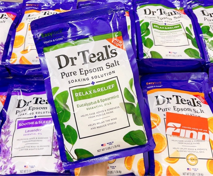 (SALE-SNL) Muối tắm ngâm bồn Dr Teal's Relax & Relief Eucalyptus & Spearmint Pure Epsom Bath Salt 1.36kg
