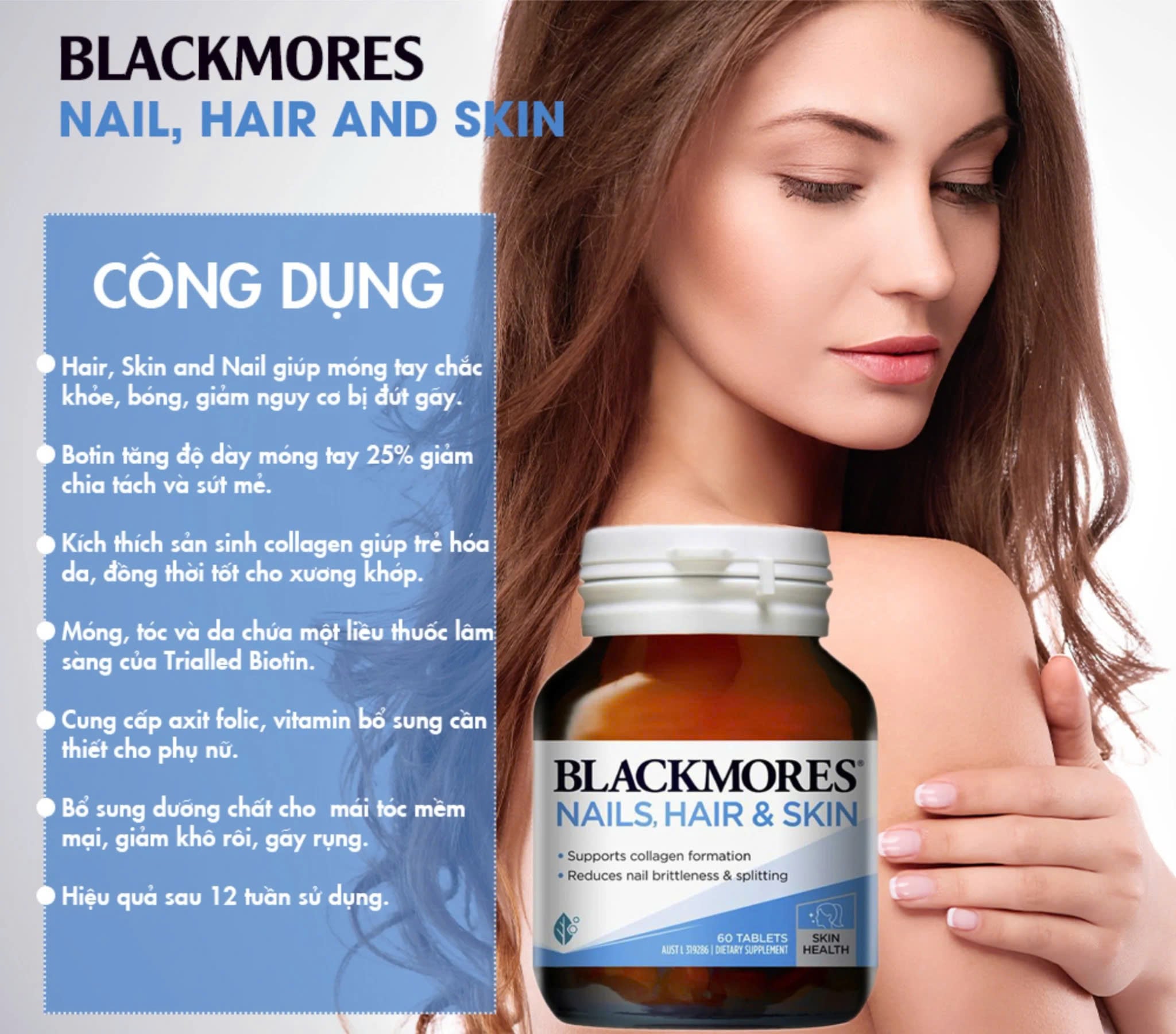 (SALE-S50) Viên uống bổ sung da tóc móng Blackmores Nails, Hair & Skin 120 viên