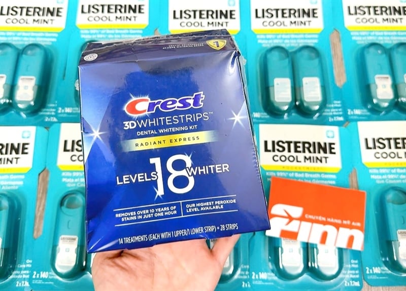 Set 14 miếng dán trắng răng Crest 3DWhitestrips Radiant Express Levers 18 Whiter – Giúp răng trắng sáng chỉ sau 14 ngày