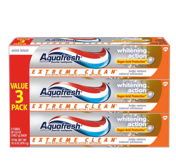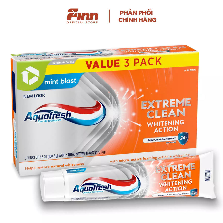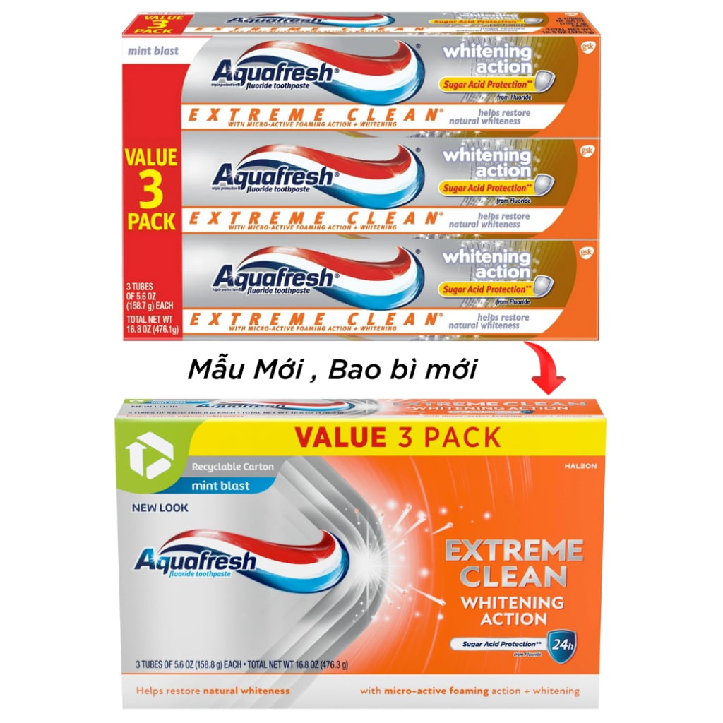 Đặt mua Set 3 Tuýp Kem Đánh Răng Aquafresh Extreme Cleaning Whitening Action Toothpaste Value chính hãng từ Mỹ với giá chỉ 420.000đ để sở hữu nụ cười trắng sáng và hơi thở thơm mát mỗi ngày!