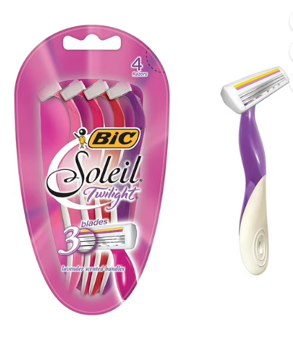 Set 4 dao cạo 3 lưỡi Bic Soleil Smooth Scented Soothing Lavender Scent Triple Blade Disposable Shavers