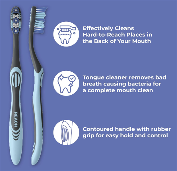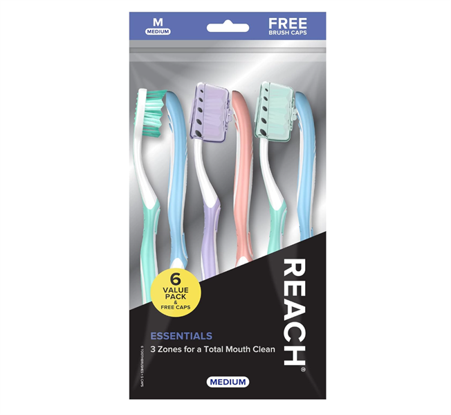 Set 6 bàn chải Reach Essentials Toothbrush with Toothbrush Covers, Multi-Angled Medium Bristles