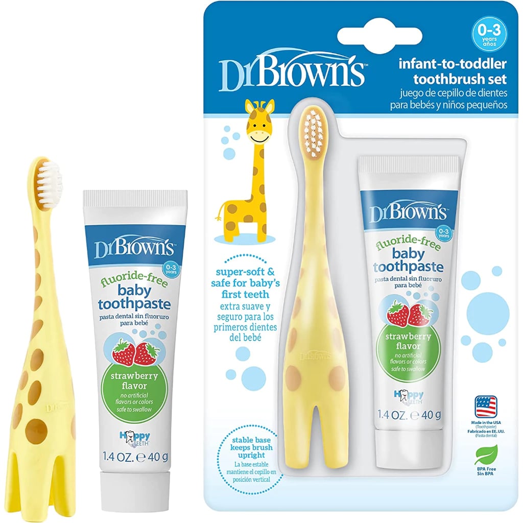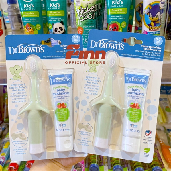 Set bàn chải và kem đánh răng cho bé Dr. Browns Infant-to-Toddler Training Toothbrush Set, Mint Elephant 1.4Oz 40g