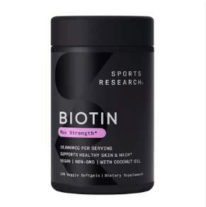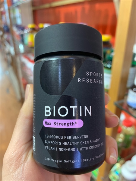 Viên uống bổ sung Biotin Sports Research with Coconut Oil 10000mcg 120 viên