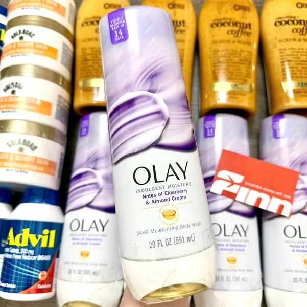 Sữa tắm OLAY Indulgent Moisture Notes of Elderberry & Almond Cream - 24HR Moisturizing Body Wash 20Oz 591ml