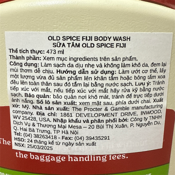 Sữa tắm Old Spice Hương Fiji Thư Giãn Nhẹ Nhàng 16Oz 473ml