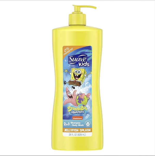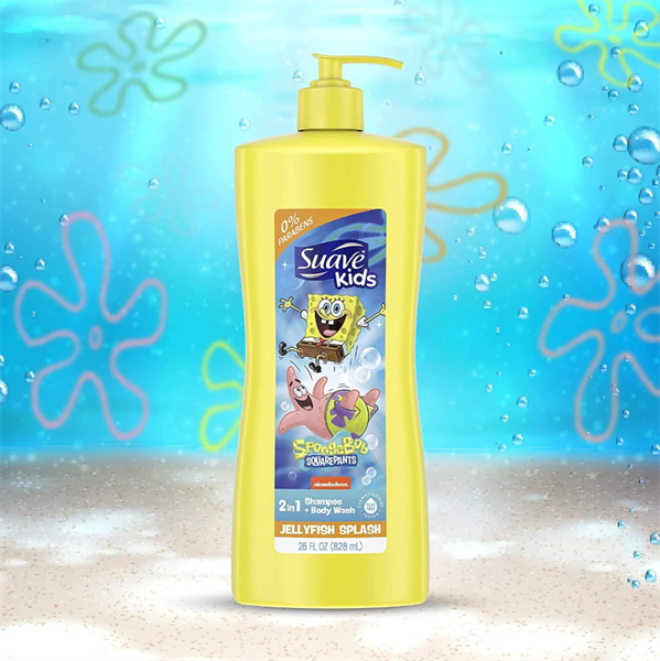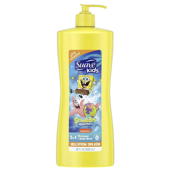 Sữa tắm gội xả cho bé Suave Kids Natural 3-in-1 Shampoo, Conditioner, Body Wash - SpongeBob SquarePants Jellyfish Splash - 28Oz 828ml