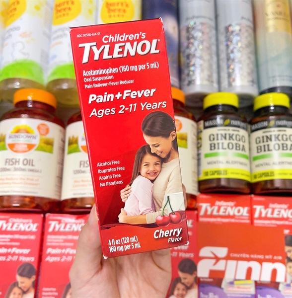 Siro hỗ trợ giảm đau hạ sốt cho bé Children's Tylenol Pain + Fever Relief Cold Medicine Cherry 4Oz 120ml