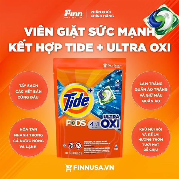 Viên giặt Tide Pods Ultra Oxi Liquid Detergent 26 viên