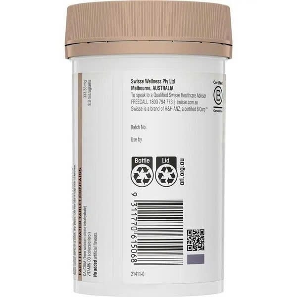 Viên uống bổ sung Canxi hữu cơ Swisse Ultiboost Calcium + Vitamin D 150 viên