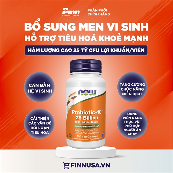 VIên uống bổ sung men vi sinh Now Foods Supplements Probiotic-10™ 25 Billion, with 10 Probiotic Strains 100 viên