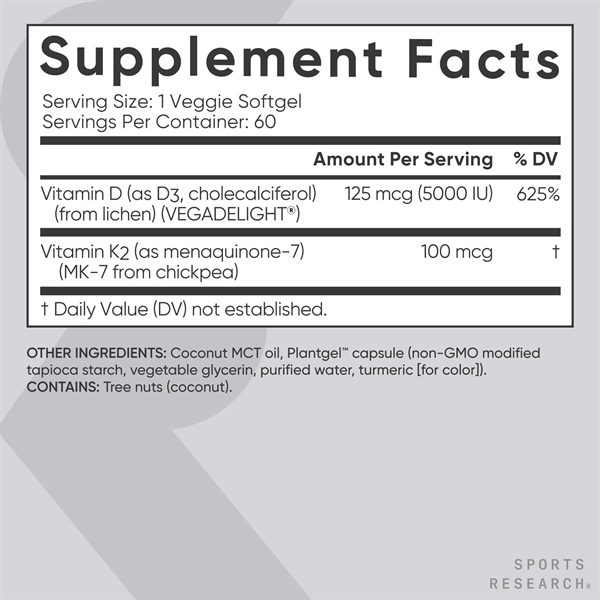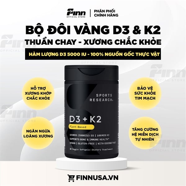 Viên uống bổ sung Sports Research Vitamin 5000IU D3 + K2 30 viên