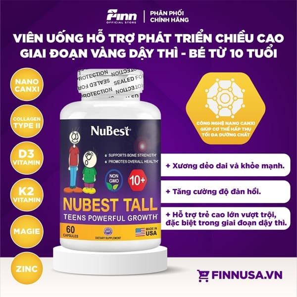 Viên uống tăng chiều cao cho bé 10 tuổi trở lên Nubest Tall Teen Powerful Growth 60 viên
