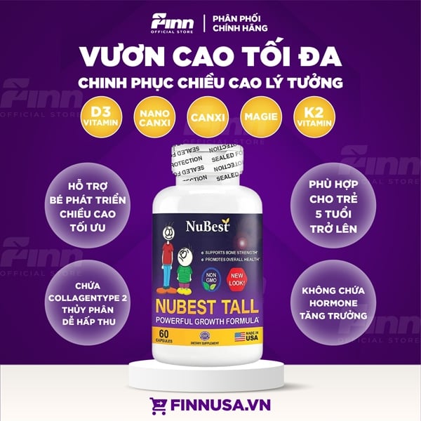Viên uống tăng chiều cao cho bé 5-10 tuổi trở lên Nubest Tall Powerful Growth Formula 60 viên